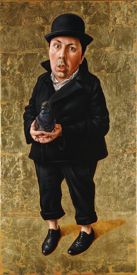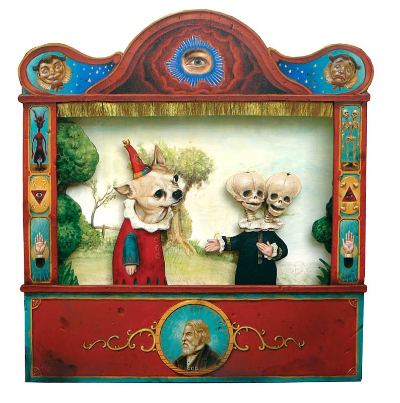 Turf is somewhat obsessed with Victorian-looking midgets sporting dandy facial hair, Russian icons, dead things of all sorts, carnival sideshows and seedy vermin-infested theatre stages. Technically, his paintings are reminiscent of the 15th century Flemish Primitives.