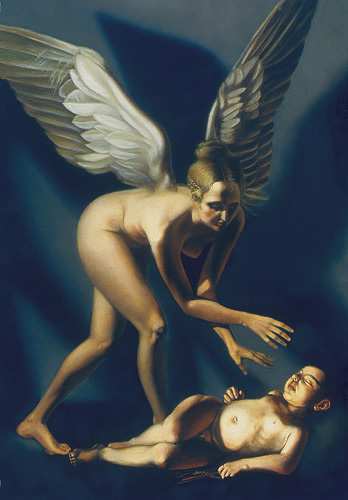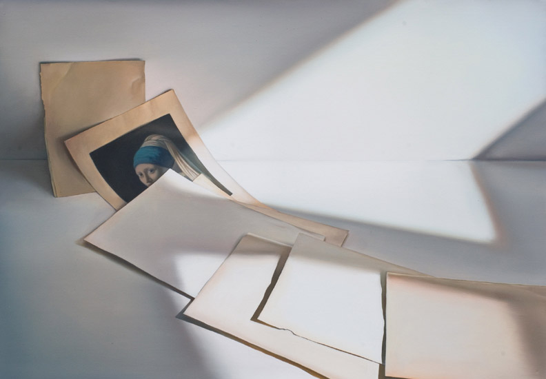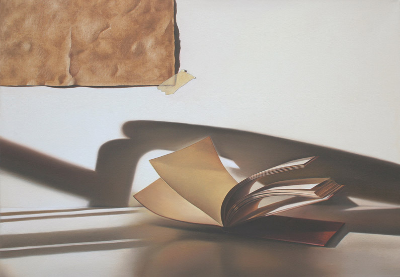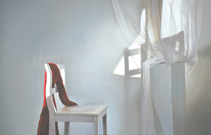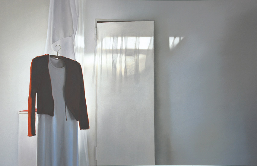 Her painting technique relies on partial transparency and is, in a strange way, invisible. Only occasionally are traces of brush strokes discernable. The white of the base coat illuminates the delicate layer of colour above, creating a picture surface that glows with an inner force. The optical spectrum of the draughtsmanship extends from inexorable sharpness in detail to delicate soft-focus effects in shadows and backgrounds. The subtly modelled half-tones allow volumes to project three-dimensionally from the painting, and spaces to win depth.