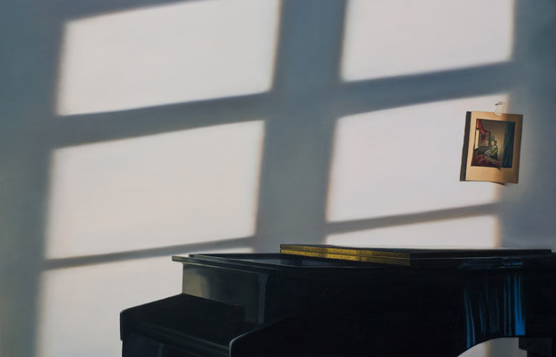 Into this almost mystical depth, objects are placed, ever bathed in light and shadow: a sober, analytic dedication to detail and moment. Through the medium of light, time is segmented into its elementary constituents, each constituent dissected with concentrated precision. The unique and transitory, apparently fortuitous, fall of light brings the fragile beauty of the moment into consciousness.
