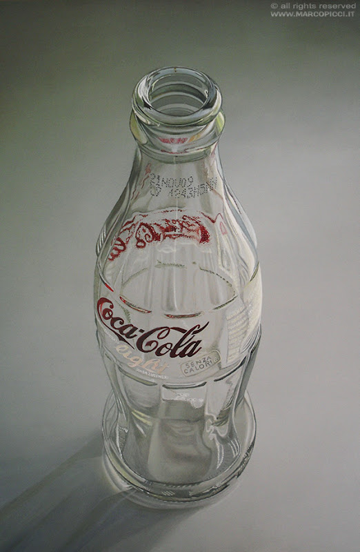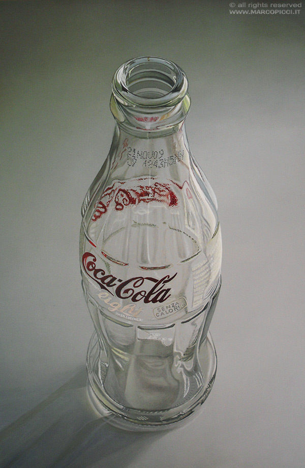 As Marco says: «I have always been fascinated by realist painting, from the Renaissance masters, those of the 17th Century (Caravaggio, Artemisia Gentileschi etc.), the 19th Century (Ingres, W.Turner), painters and graphic art masters of the 20th Century (Pietro Annigoni, Renzo Vespignani) to those of the european (Franz Gertsch, Gerhard Richter, Luciano Ventrone) and american hyperrealists from the begining of the 1970s (Richard Estes, Robert Bechtle, Ralph Goings). From the latter of these, I have taken ideas for some of my recent watercolor pictures, a rather unusual technique for this style (for which oils and acrylics are normally used). In fact, my own personal research is aimed towards uniting the naturalness of colour,transparency and the very softness of the water-colours to produce an extremely photorealistic image of the subject, obtained by meticulously working on details and emphasising the contrasts.