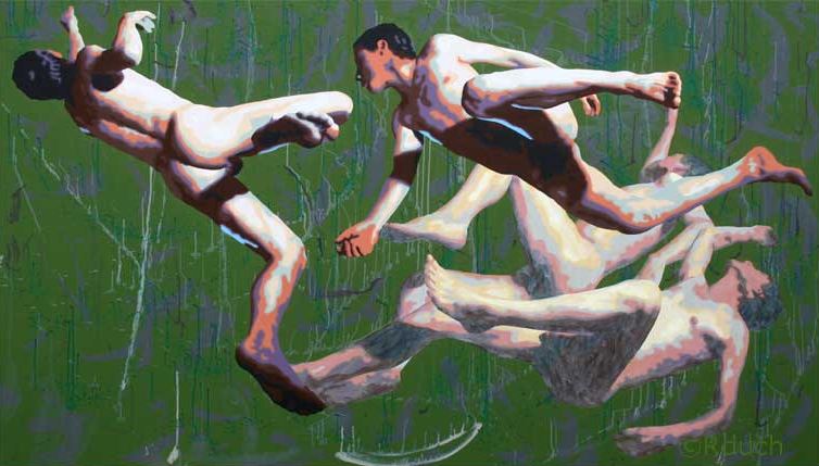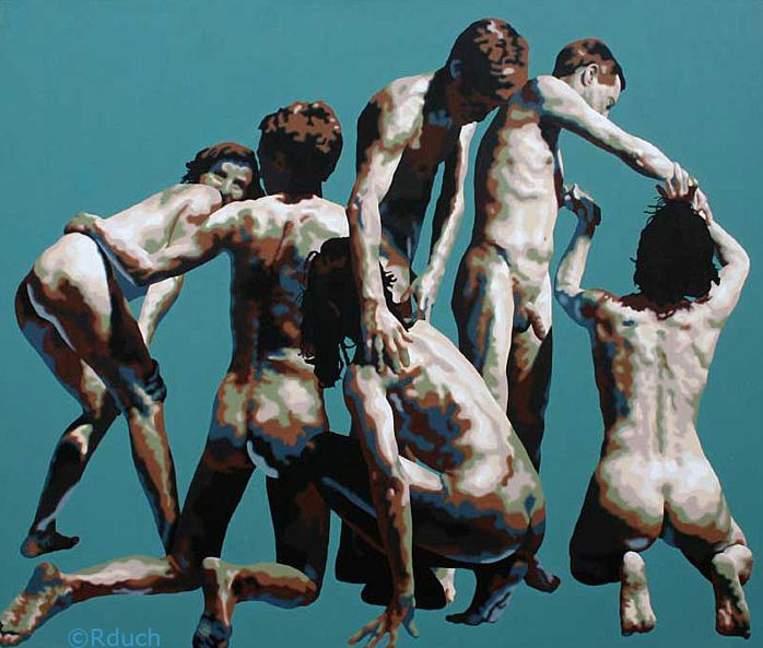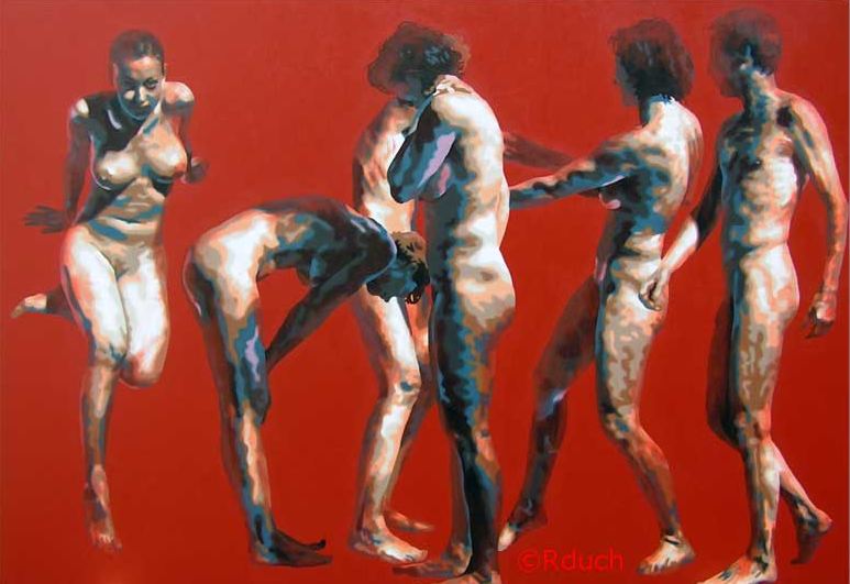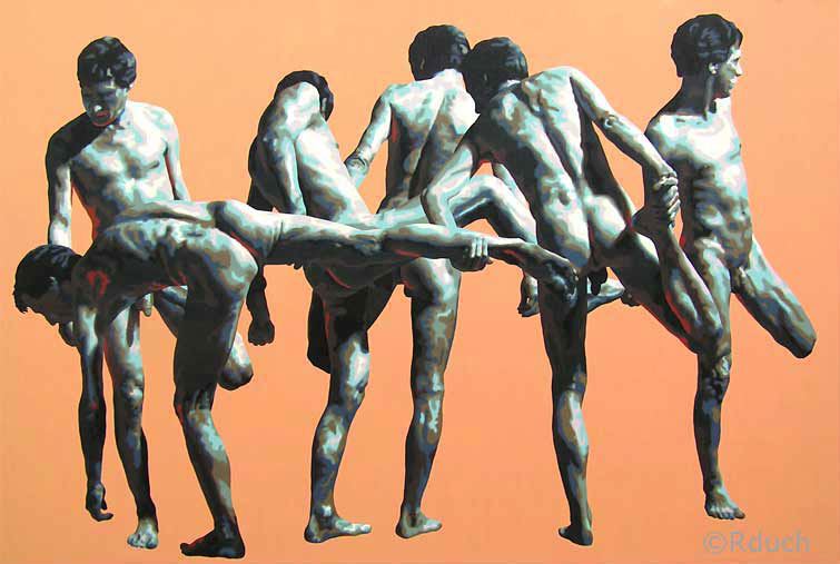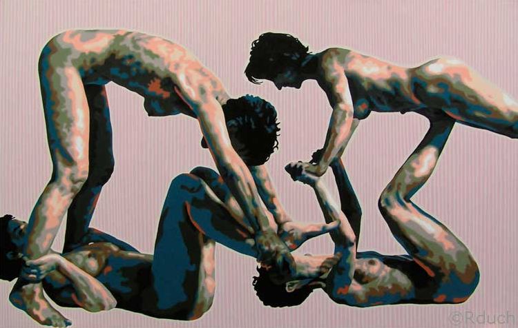 Ralf Rduch creates large-sized nude paintings. His only motif is the human being who is posing nude exclusively. By abandoning clothing his cultural background, social status and that what he wants to represent most is not apparent. Clothing implies pretending – the body itself though will never be a feint.